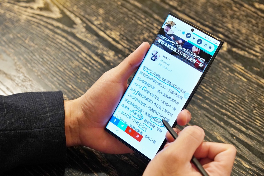 而許多 Note 系列使用者愛用的 S Pen 功能在 Galaxy S22 Ultra 上重生,不論是實用的 Samsung Notes 或是各種 S Pen 獨有的遙控功能都可以使用,對於會使用手機工作的人來說,有 S Pen 在真的可以大幅提高工作效率,像是記錄迸發的靈感,跟同事或上司溝通的重點都可以隨寫隨記。