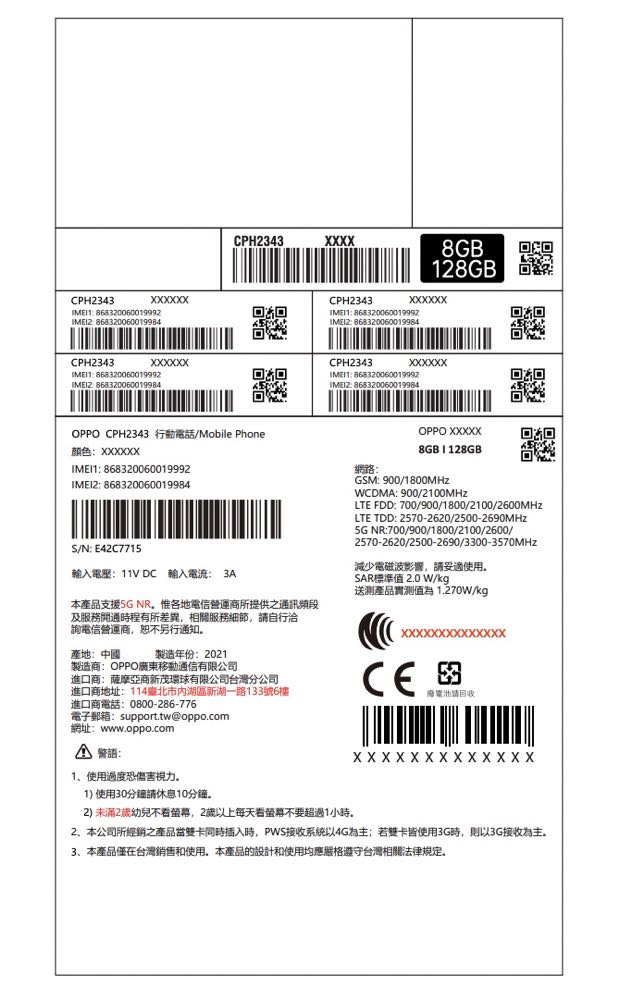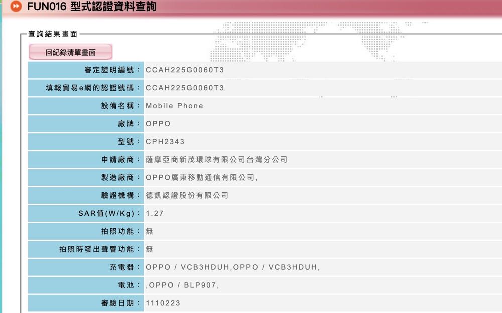 根據 NCC 上的資料 「CPH2343」背面將有雙鏡頭配置,前置鏡頭放在正面螢幕左上角,螢幕則是使用平面設計。