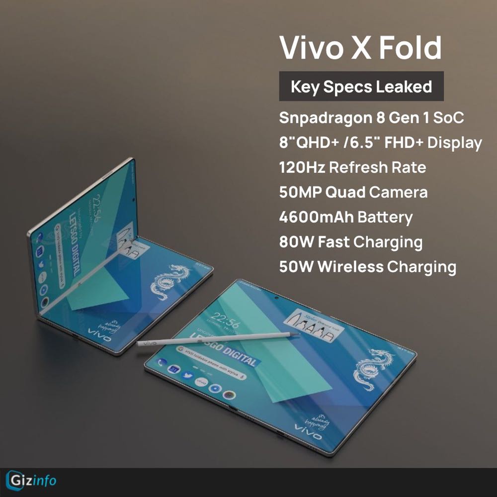 根據目前所擁有的爆料資訊,vivo 摺疊機 X Fold 將採用高通 S8 Gen1 以及四相機鏡頭組合,螢幕則分別是 8 吋 QHD+ 與 6.5 吋 FHD+,支援 120Hz 螢幕更新率。