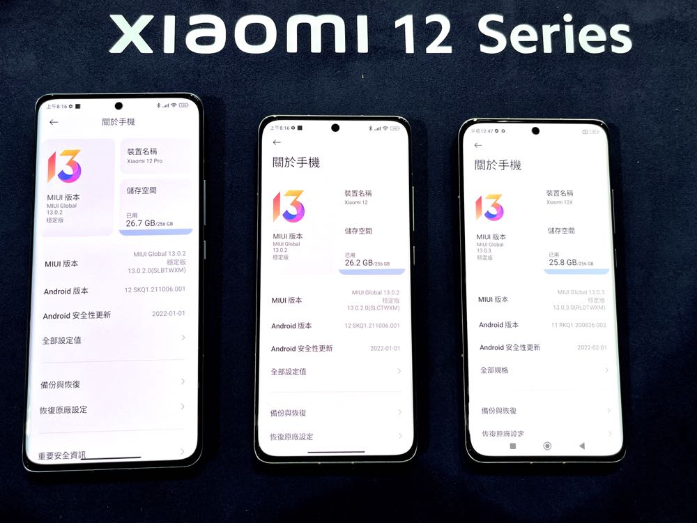 [圖由左至右分別為:小米 12 Pro、小米 12、小米 12X]