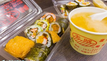 我覺得阿裕壽司的蒸蛋跟老賊壽司的一樣便宜又好吃,因為外帶後我們直接在車上就把蒸蛋吃完了,所以沒拍到裡面的內容物。蒸蛋軟嫩非常好入口,底下有魚板跟蛤蠣,帶些許鮮甜味,大人小孩都會很喜歡。