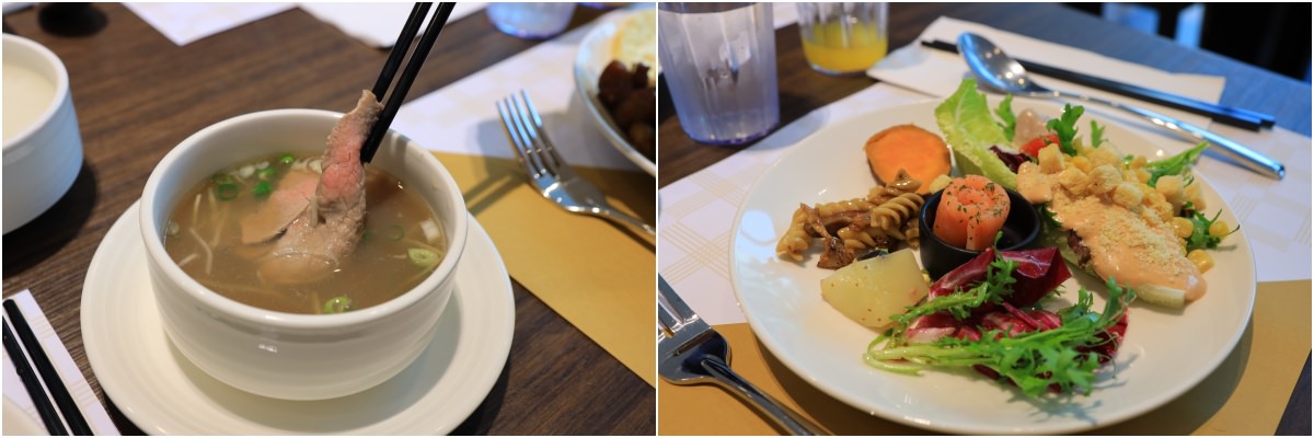 我通常都對飯店早餐不會報太高的期望,但不得不說煙波大飯店台南館的早餐有讓我驚喜到,除了用餐環境延續著明亮寬敞的風格之外,重點是餐點選擇超多,西式、中式、日式、港式、素食、水果、麵包、現煮湯麵、現燙牛肉湯、現切火腿⋯非常豐富。