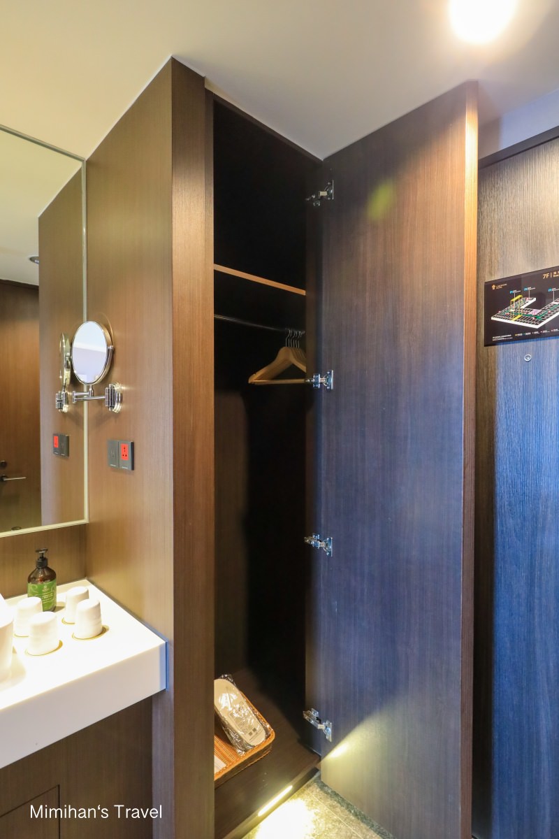 衣櫥小小的,裡面有免洗室內拖鞋。