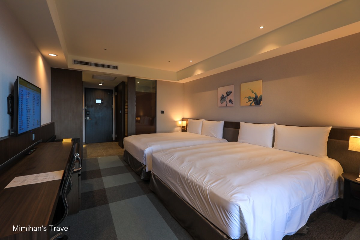 家庭房擺了兩張Queen Size的床墊,軟硬度中等偏硬,兩個人睡一張空間很足夠,翻身時不太會互相干擾,不過枕頭就感覺質料有點粗粗的,我個人不是很喜歡,但老公和小朋友都說睡得還不錯。