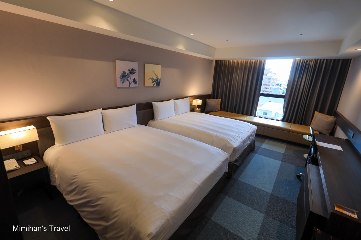 煙波大飯店台南館的豪華家庭房,房間進來就是右邊是衣櫥&洗手台;左邊則是分開的浴廁,延伸到裡面的床鋪和窗邊的長沙發,風格上我個人是覺得中規中矩,但幸好住宿空間明亮寬敞,整體還蠻滿意的。
