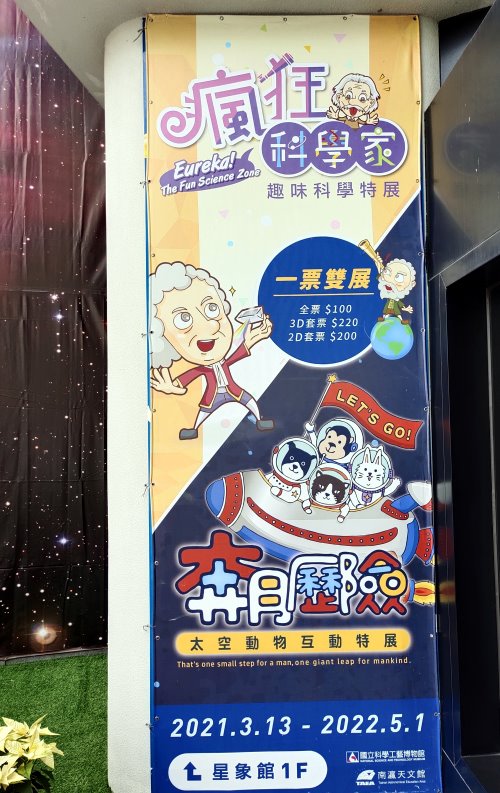 ▼天文展示館票價全票是50元,學生票是40元,6歲以下、65歲以上、身心障礙者及陪同者一名、領有觀光局核發之導遊證者是免費入場,20人以上團體票是40元,20人以上學生團體是30元;此外2D、3D劇場都是需要額外買票,天文展示館裡頭的星際漫遊則是統一收費20元,需與天文展示館門票一同購買。