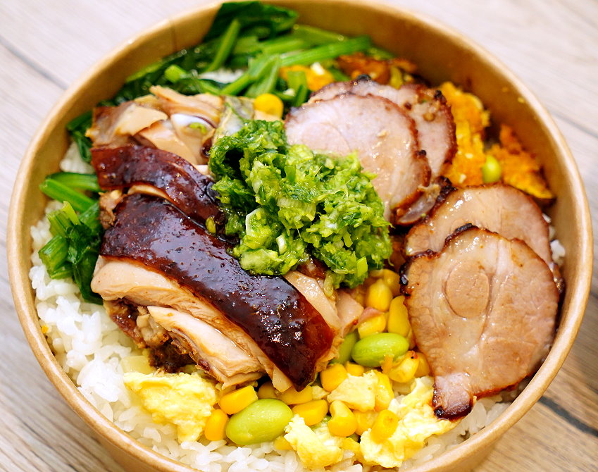 ▼第一次看到燒臘便當使用櫻桃鴨、桂丁土雞當作主食材,而且不用花大錢就能吃得到~~開心!
