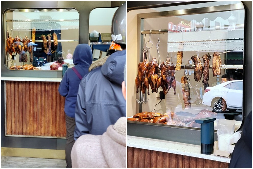 ▼店面就是一個小小的櫃台,裡頭是工作區域,一旁有透明櫥窗,可以看見油亮的燒臘在閃閃發光,排隊的同時就開始流口水啦~~