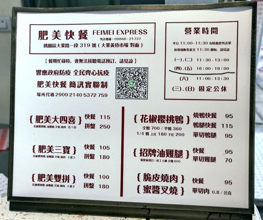 【桃園美食】肥美快餐.隱身飲料店的排隊燒臘便當!大業寶山黃昏市場前!