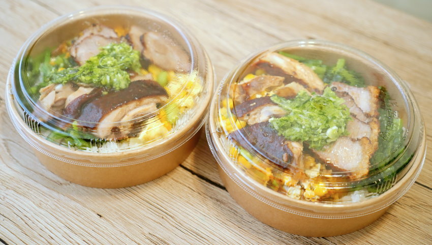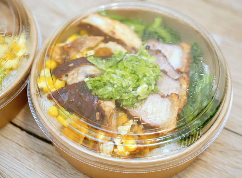 ▼他們家是採用圓形便當盒,帶點深度,質感也挺不錯,從透明上蓋就能看到大致的菜色!