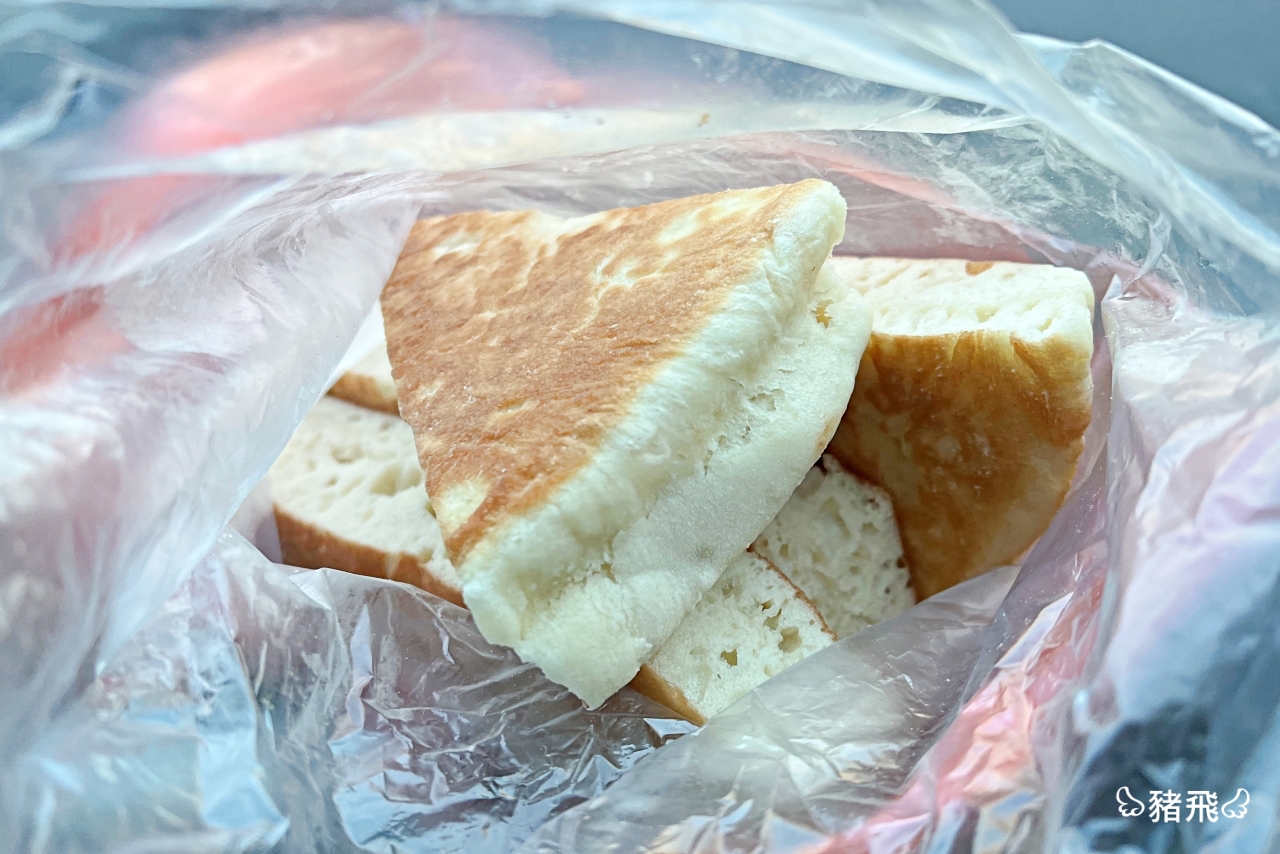 除了原味還有枸杞、黑糖口味,大大一塊充滿氣孔的大餅看起來很像三角海綿,