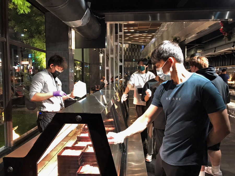 刷一整排的肉品,讓消費者可以看到最肉品的新鮮度,快速拿取自己喜歡的燒肉