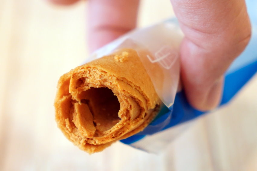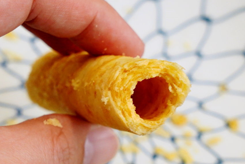 ▼看得出來蛋捲只有薄薄2圈,吃起來爽度比較沒這麼高,而且容易掉屑~~不過口味是還不錯,其中我們比較喜愛的就是起司口味,酥鬆又帶點微微鹹香的起司香氣,算是挺耐吃的一款;蜂蜜口味,這款比較吃不出蜂蜜香氣,稍微可惜了些~~紅茶口味也還不錯,淡雅清香帶點微甜滋味,比較不容易膩口~~可可口味,帶有可可香氣,但甜度略高一些,喜愛巧克力的朋友應該會喜歡!