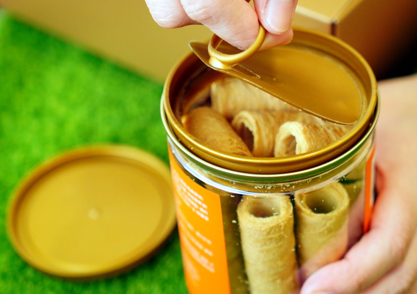 ▼打開上蓋,裡頭還是易開罐設計,好拉不刮手,讓蛋捲可以保持最新鮮、脆口的狀態!