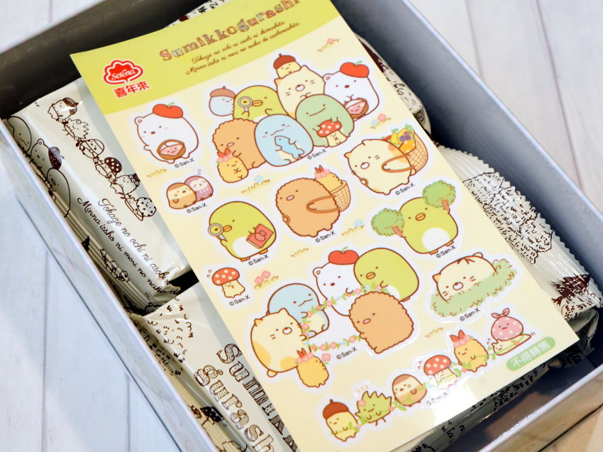 3.精美的角落小夥伴蛋捲鐵盒,享用完還可當作收納盒使用,裡頭附贈限量角落小夥伴貼紙一張。