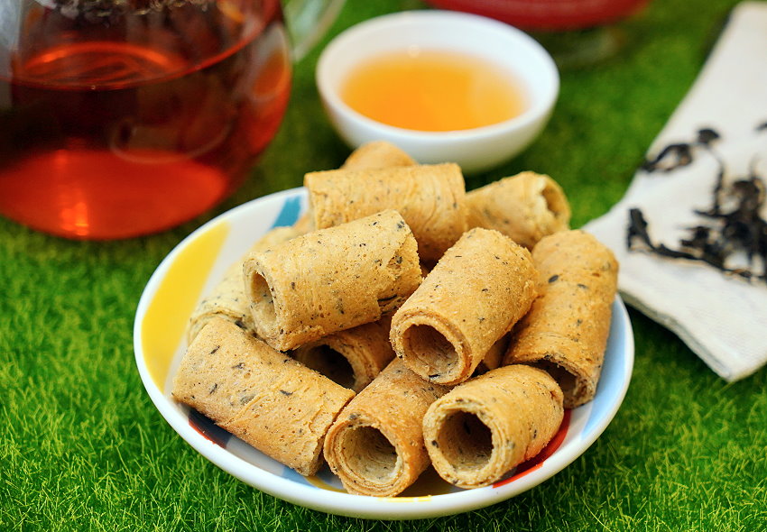 蛋入蛋捲紅玉紅茶,採用嚴選南投魚池紅玉紅茶葉下去研磨,搭配大武山雞蛋製成,蛋捲還能明顯看到茶葉的身影,整個很真材實料!