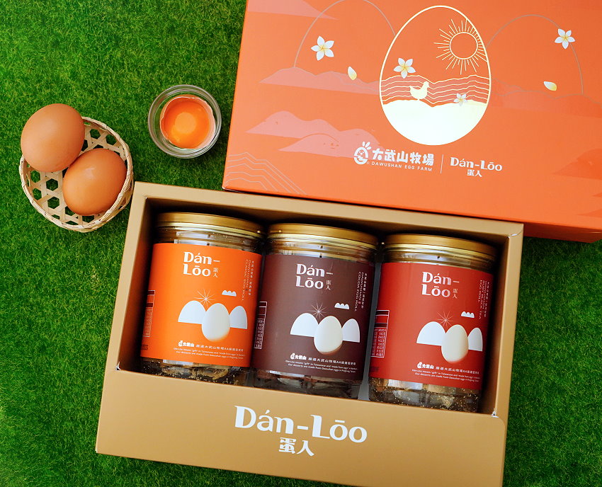 ▼「蛋入-大武山經典蛋捲禮盒」外盒採用溫暖的亮橘色呈現,搭配大武山、陽光、花朵、雞隻等意象,再以金色勾勒出雞蛋的模樣,呈現出不凡的頂級質感,不管是送禮或是自己享用都很適合!其中「蛋入」既有台語伴手禮「等路」的含義,同時也意味著將好蛋融入美食中,是款老少咸宜的涮嘴美味!