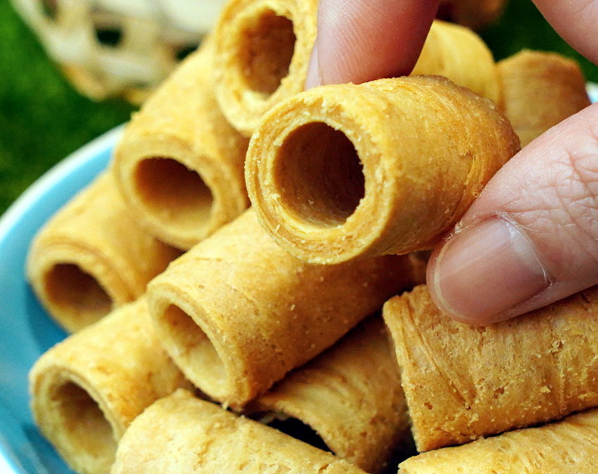 ▼一口咬下,酥香又脆口,帶有蛋香與微甜的味蕾,算是滿不錯吃的;不過吃起來有點硬脆,對於牙口不好的朋友可能會有點吃力!