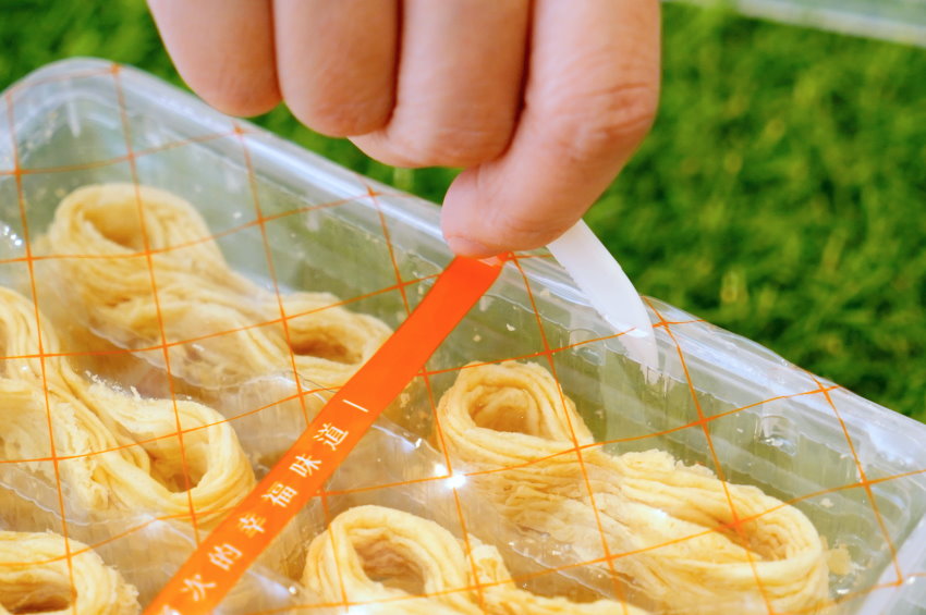 ▼輕輕一拉就能看到裡頭的蛋入蛋捲,一共有三種口味,分別以不同顏色標示!