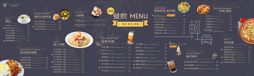 ▲雅聞峇里海岸裡也有餐廳,提供義大利麵、石鍋拌飯、咖哩飯、火鍋、炸物、披薩、咖啡及飲品等餐點可選擇,價位上也非常平易近人喔。