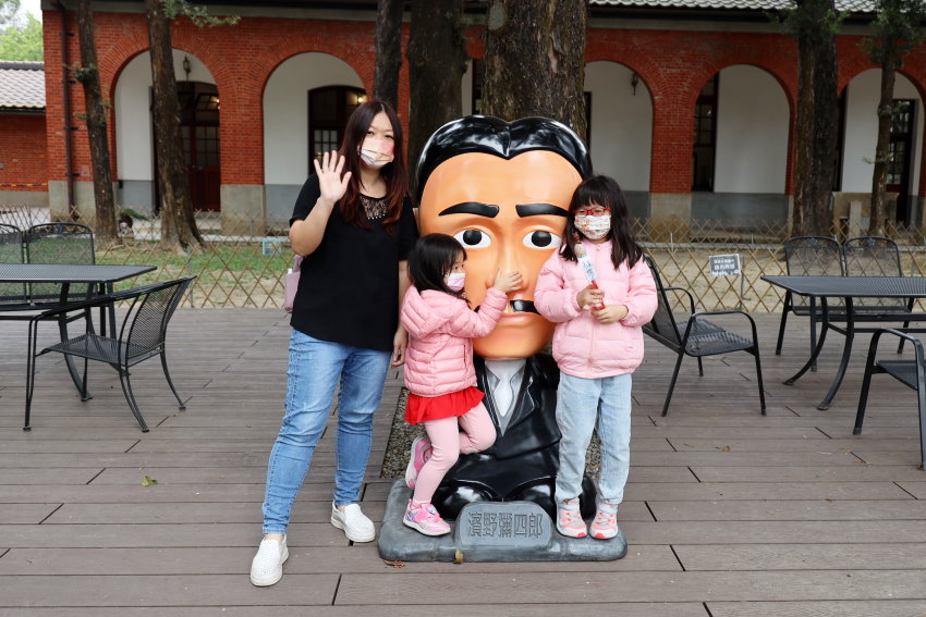 ▼有臺灣水道之父之稱的濱野彌四郎Q版雕像,模樣很可愛,連小倆口都很想對他東摸西摸的(笑)~~他在台灣工作23年間,陸續參與並完成基隆、臺北、臺中、臺南等地的水道計畫,對於臺灣水道可說是貢獻良多!