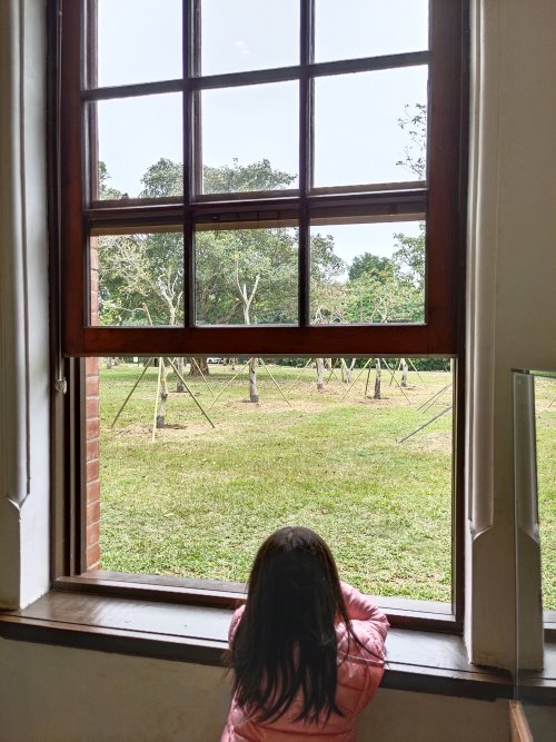 ▼日治時期很多都是採用垂直平衡窗,旁邊放有砝碼,就可以平衡的拉起來,上下都可以完美固定住!小口妹還倚靠在窗邊欣賞風景,整個很悠閒的感覺~~