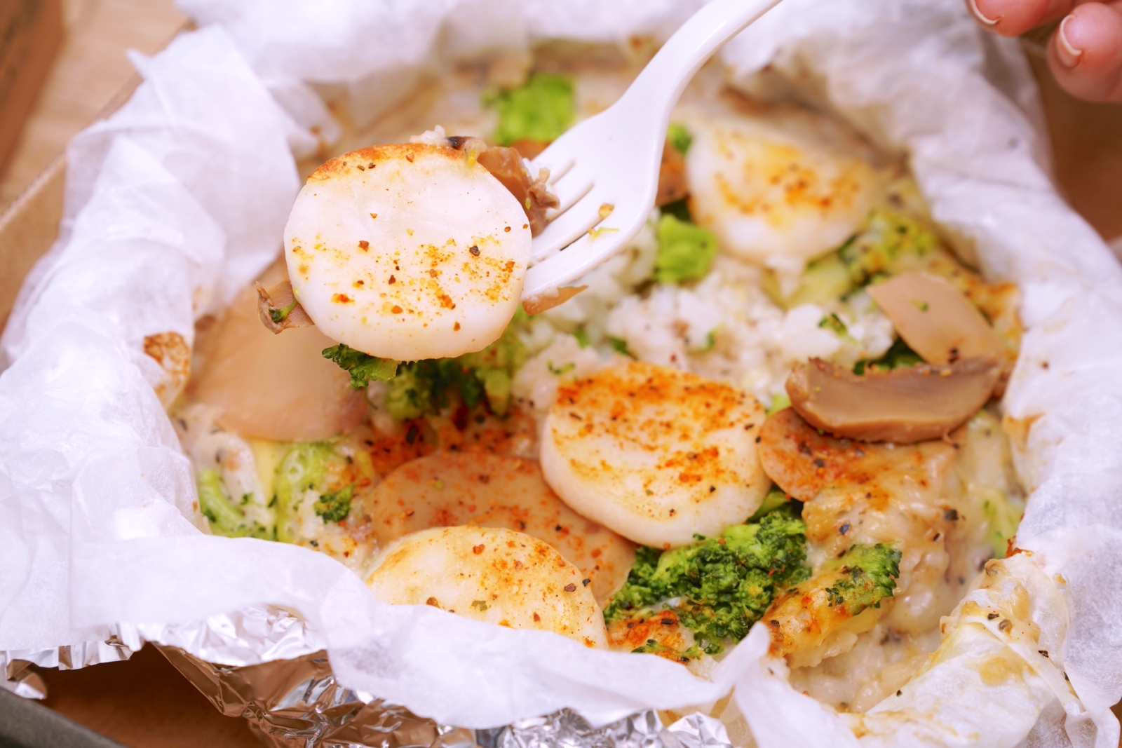 粉紅海鮮起司紙包飯