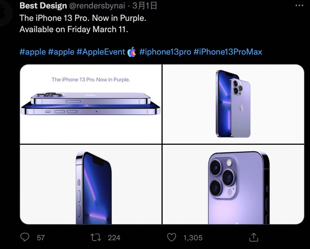 Apple 稍早才公布將在台灣時間 3 月 9 日凌晨舉辦春季新品發表會,大家還正在討論究竟會推出哪些新品時,Twitter 上就有網友爆料,Apple 將會帶來 iPhone 13 Pro 紫色新色與新款 Apple Watch SE!