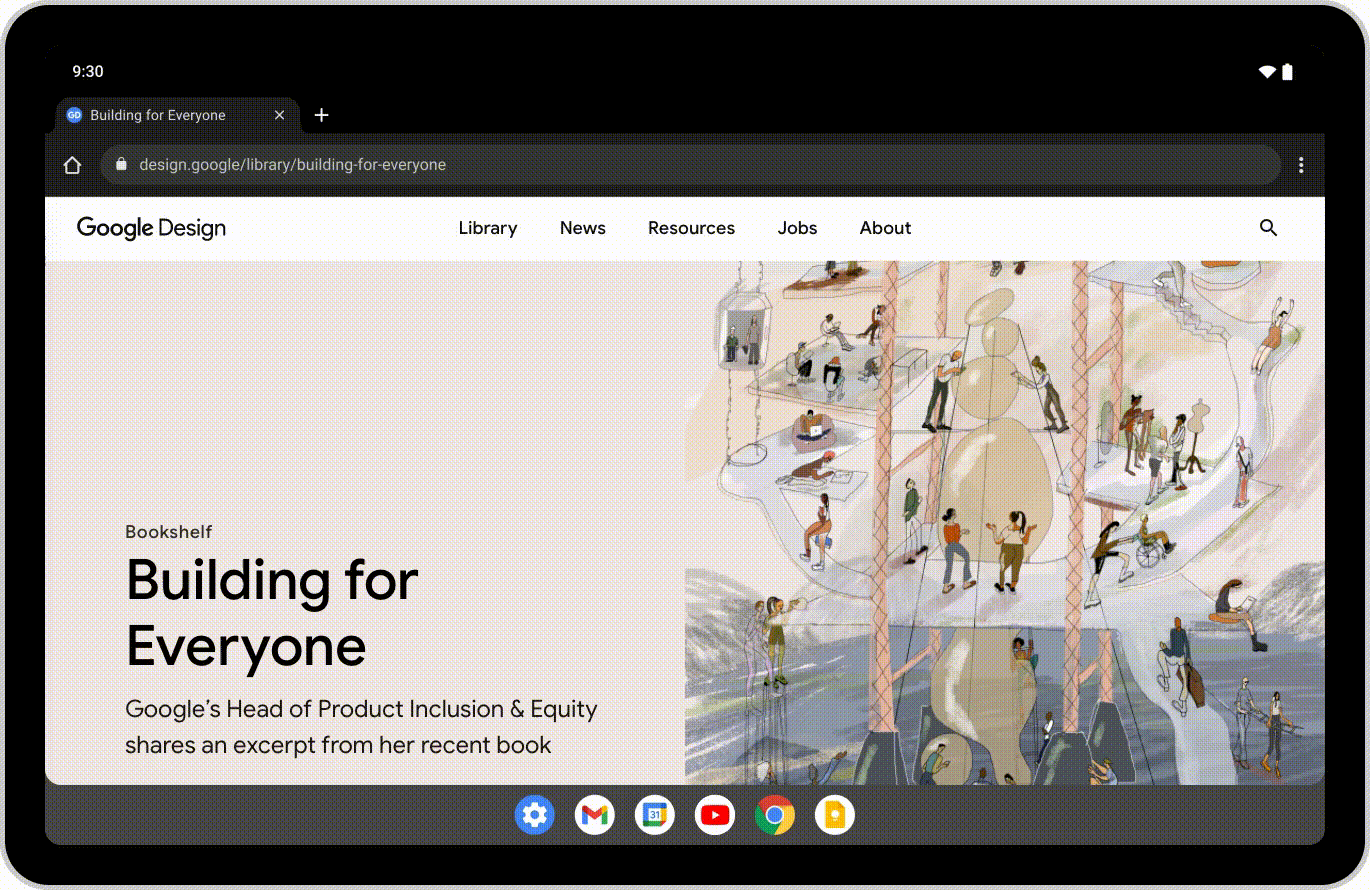 Google 也增加了一個工具列欄位,能夠幫助多工工作者能即時啟動和切換應用程式,使用者也可以從任務欄中拖拉任何應用程式,並進入分割視窗模式,方便一次處理兩件事情,像是可以在閱讀新聞的同時觀看 YouTube 影片,或是在 Chrome 瀏覽器中,為即將到來的旅行安排住宿,同時透過 Google 地圖查看其所在位置。