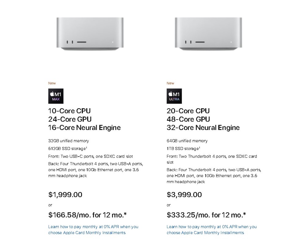 配備 M1 Max/M1 Ultra 的 Mac Stuido,售價新臺幣 59,900/119,900 元起,美國 3 月 18 日正式開賣,臺灣暫未公佈上市資訊。
