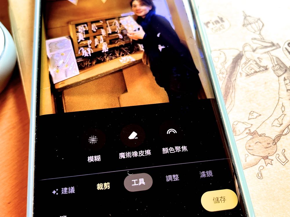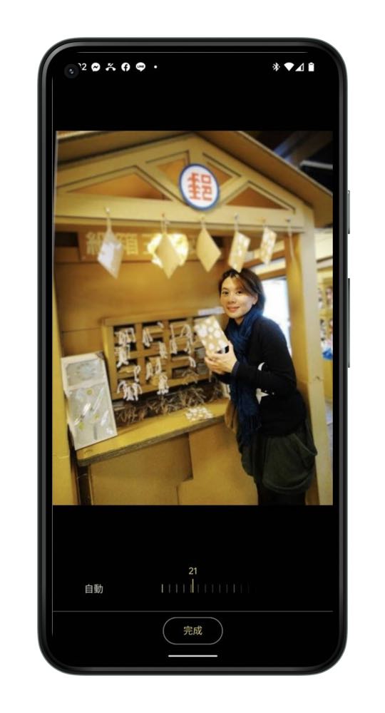 模糊」 – 模糊指的就是「肖像模糊」功能,這主要是針對沒有使用肖像模式(就是背景虛化)的人物相片來模糊背景。最特別的就是即便照片是多年前拍攝、或拍照當下沒有開啟人像模式,也都能夠輕鬆變成肖像照。