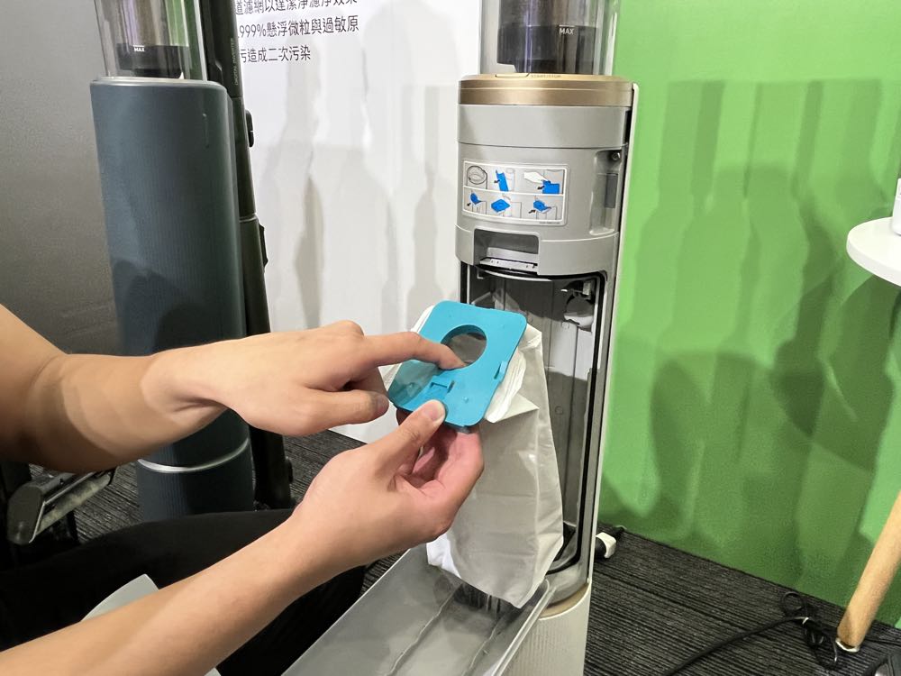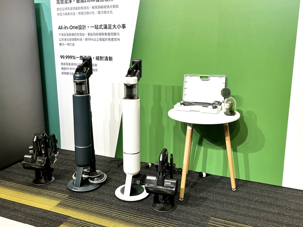 「BESPOKE Jet 無線變頻吸塵器」則是有夜幕藍以及皎月白兩款配色。兩款皆配備 All-in-One 旋風集塵充電座,為集結自動除塵、充電、配件收納功能的三合一充電收納座,消費者只要在吸塵完畢後,將吸塵器放入集塵塔中,按下 Start 開關後,就能自動將集塵盒中的垃圾吸入集塵塔中,集塵塔更搭載阻隔率高達 99.999% 的多層次濾清系統,能確保消費者在清潔過程中,釋放出無雜質的純淨空氣。
