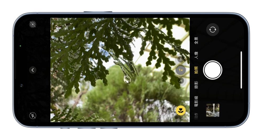 接著在拍照模式中只要把相機接近要拍攝的主體時,畫面就會出現 “小花” 圖示,也表示進入了「微距」模式。