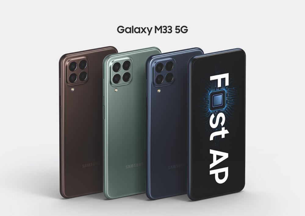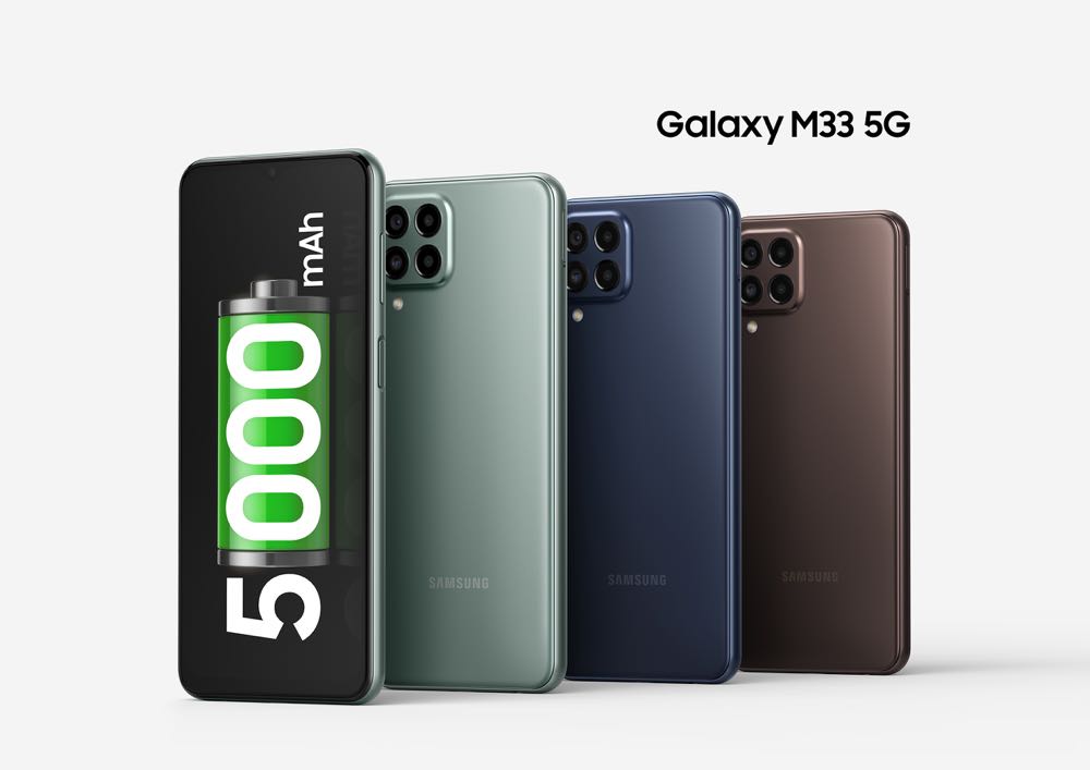 Galaxy M33 5G 將推出大亨藍、溫拿棕、贏家綠 3 款顏色,單機建議售價 NT$8,490,預計 4 月 8 日起在三星商城、PChome 24h購物、MOMO購物網、Yahoo購物中心、蝦皮商城、 i 預購、Friday購物、GT亞太電信、東森購物等指定線上通路陸續開賣,並於28 日 13:00 起於上述通路開放預訂。只要在 5 月 31 日前預訂或購買Galaxy M33 5G即贈快充通用型旅充(25W)Type C(建議售價 NT$590)。