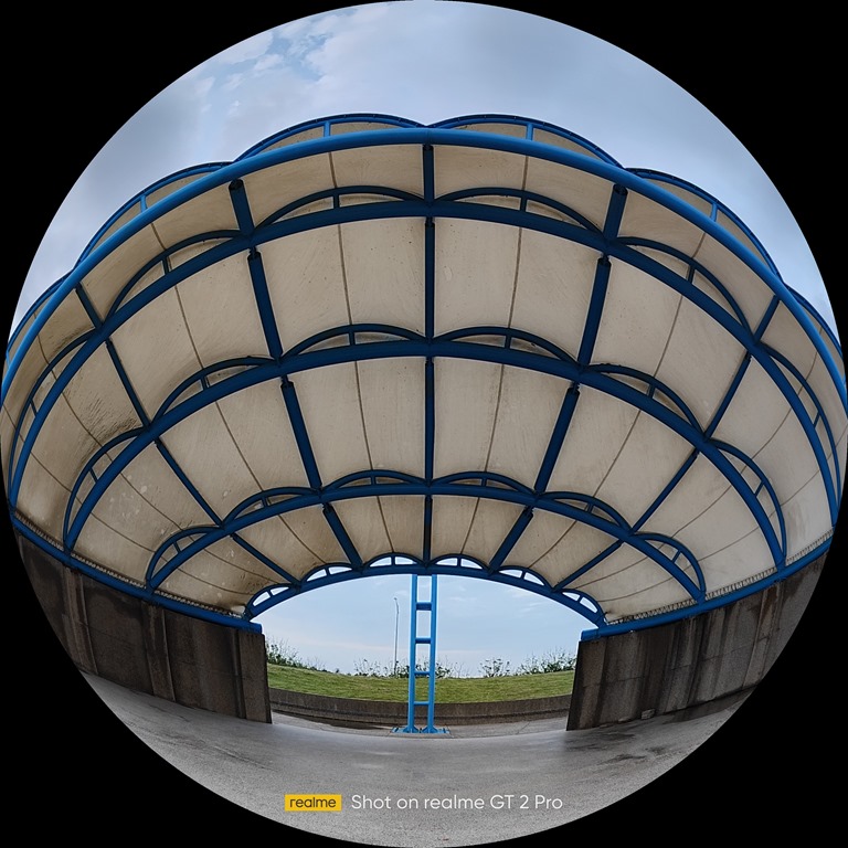 廣角鏡部分在一般拍攝下,有著優異的變形校正,但如果想要有著如魚眼鏡頭般的邊緣變形張力,可以選用 150° 功能拍出更特別的景色,也可以特別選用功能中的魚眼模式,拍出圓形的高張力誇張照片。