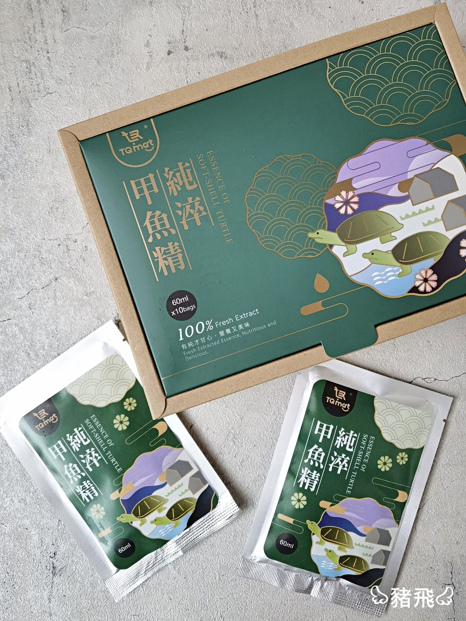 甲魚精因食材本身味道就比較重(像是濃縮了好幾隻甲魚在裡面的那種鮮度XD)因為純淬精類禮盒強調「純粹」,所以不加添加物、中藥等其他食材去蓋過食材本身風味,男生對於甲魚精接受度很高,漢斯先生就說他特別愛這個風味。