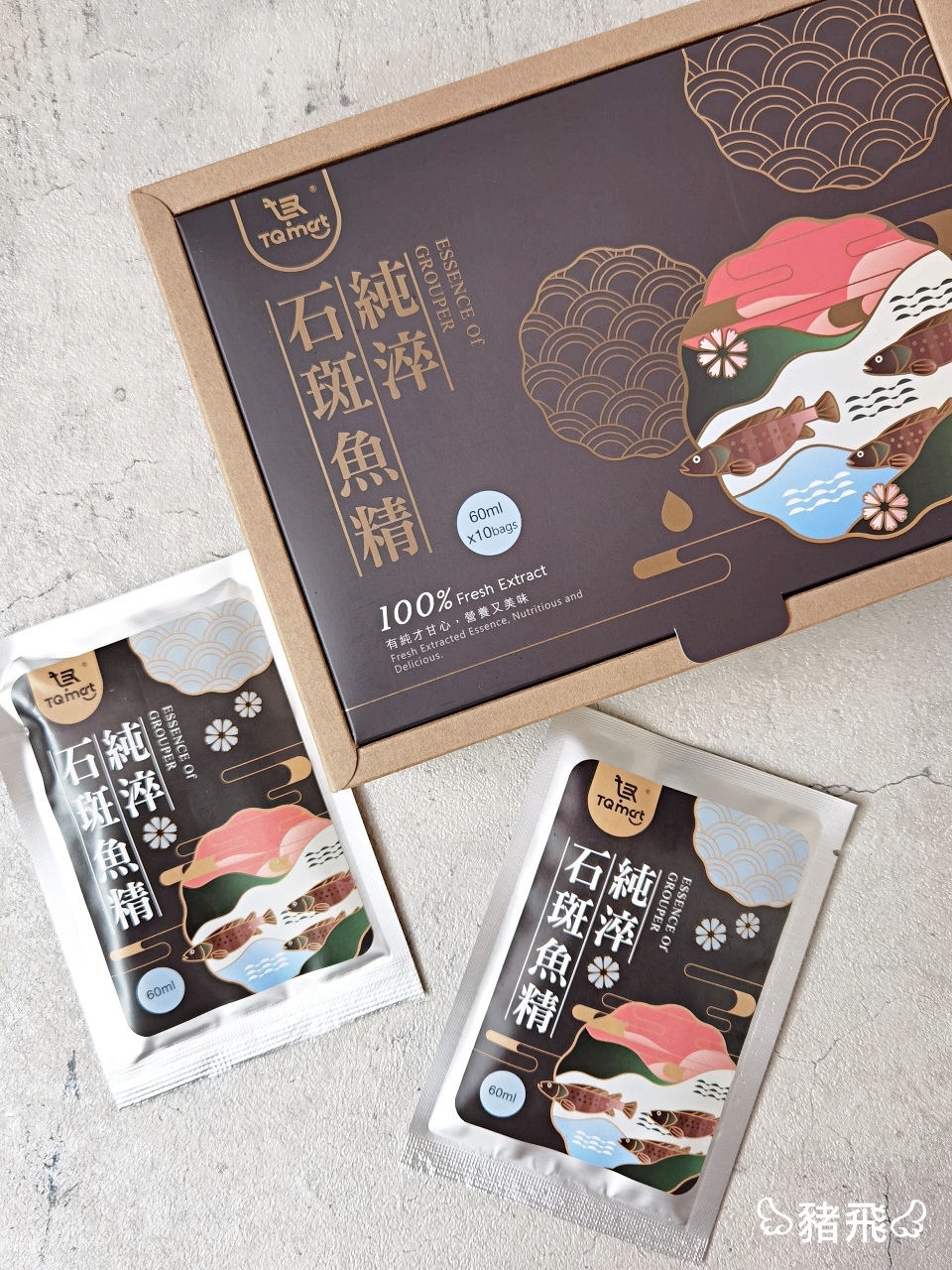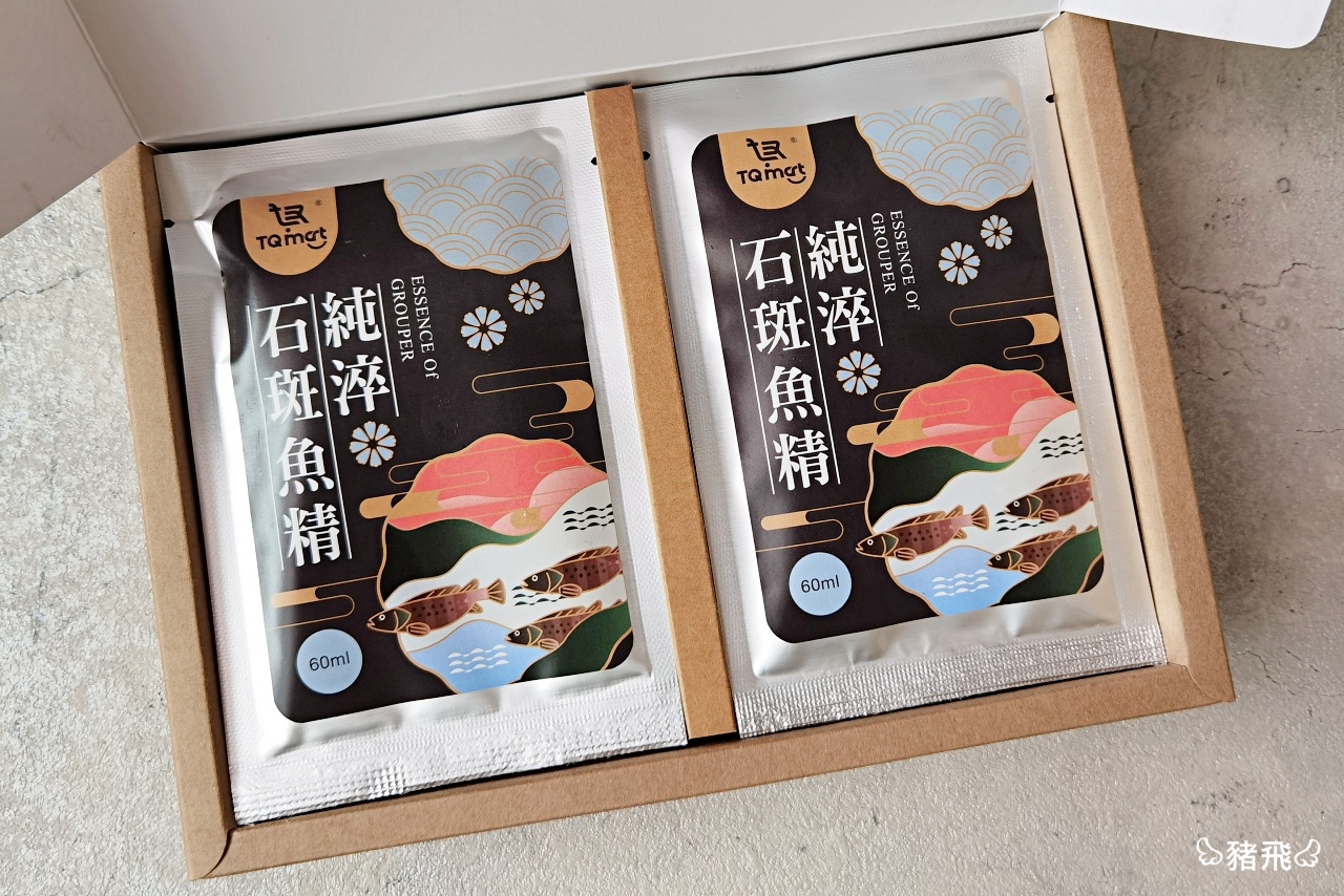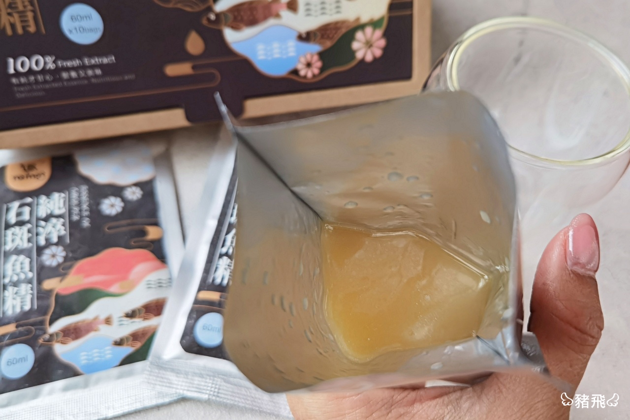 家裡長輩都說,石斑魚、鱸魚這種膠質多的魚種很適合手術後補充,尤其生產完的媽媽們更是很需要喝起來。現在不需要再辛苦熬煮魚湯了!這樣小小一包60ml的石斑魚精就含有滿滿營養。石斑為魚中之王,飼養成本高、培育費時,其中龍虎斑同時擁有龍膽石斑Q彈膠質又有老虎斑魚肉的細緻。選用屏東無毒龍虎石斑製作,湯頭乳白色喝起來有濃郁的魚湯味,嘴唇上有很明顯的黏黏膠質口感,我特別愛喝魚湯,這個喝起來就像是熬煮很久的魚湯,非常好喝。