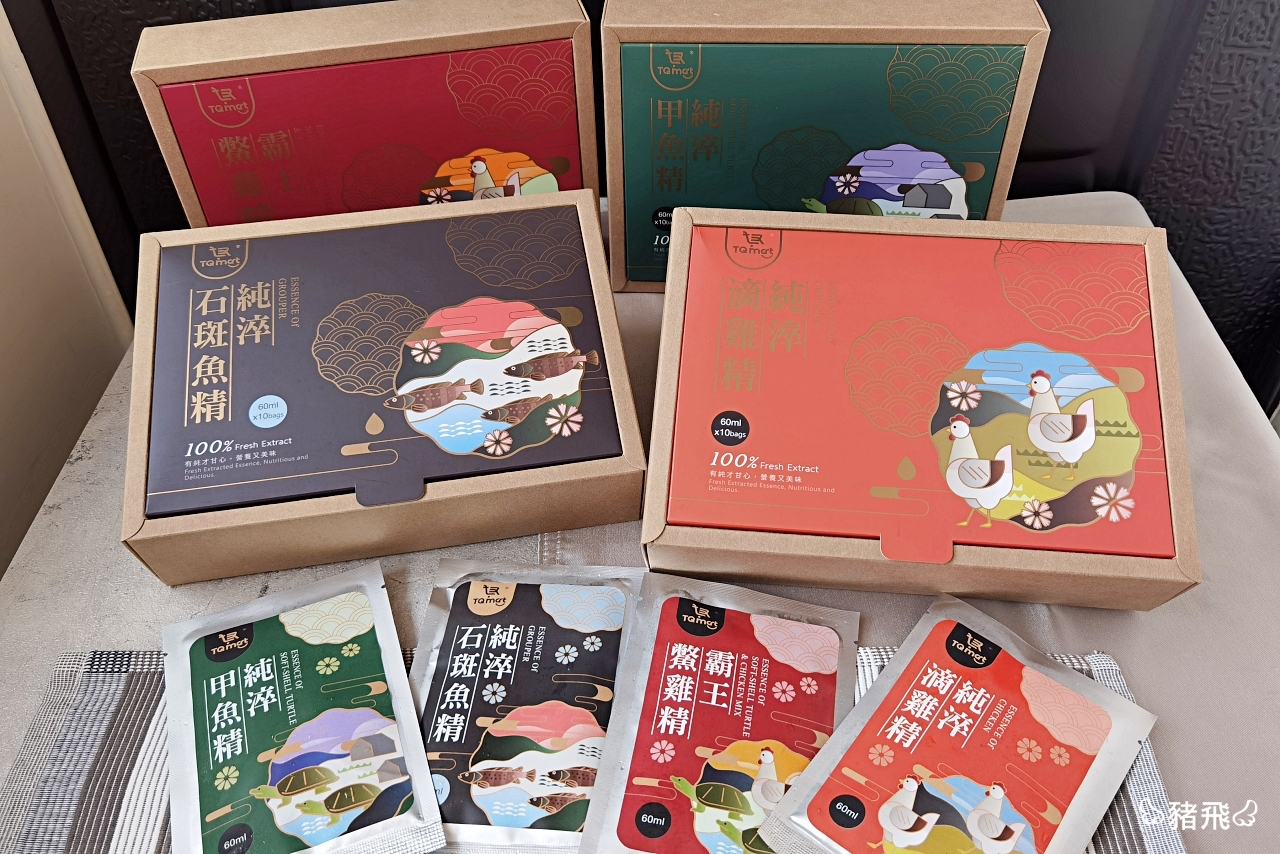 說到滴雞精,市面上的品牌多到眼花撩亂,近幾年更推出魚精、鹿精,講究不同功能性的保養。豬飛一直是滴雞精的愛好者,因為小小一包就能吸收滿滿營養,對於工作忙碌的上班族實在是一大福音。買這種喝的保養品,我通常會有幾項考量點:口味順口好喝、食材的安全性、公開透明的溯源、合理的價格。光是這兩年我喝滴雞精都過10種以上品牌,需要冰的、常溫的,其實都有其各自優缺點,能挑到適合自己的品牌才是重點。【TQ mart純淬精品禮盒】是我最近很喜愛的品牌,喝了一個多月,決定好好的寫文跟你們分享。跟你們說,這四款口感超濃郁的!很像是自家熬煮好幾個小時的精華湯頭,喝過都會愛上。