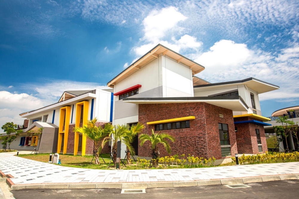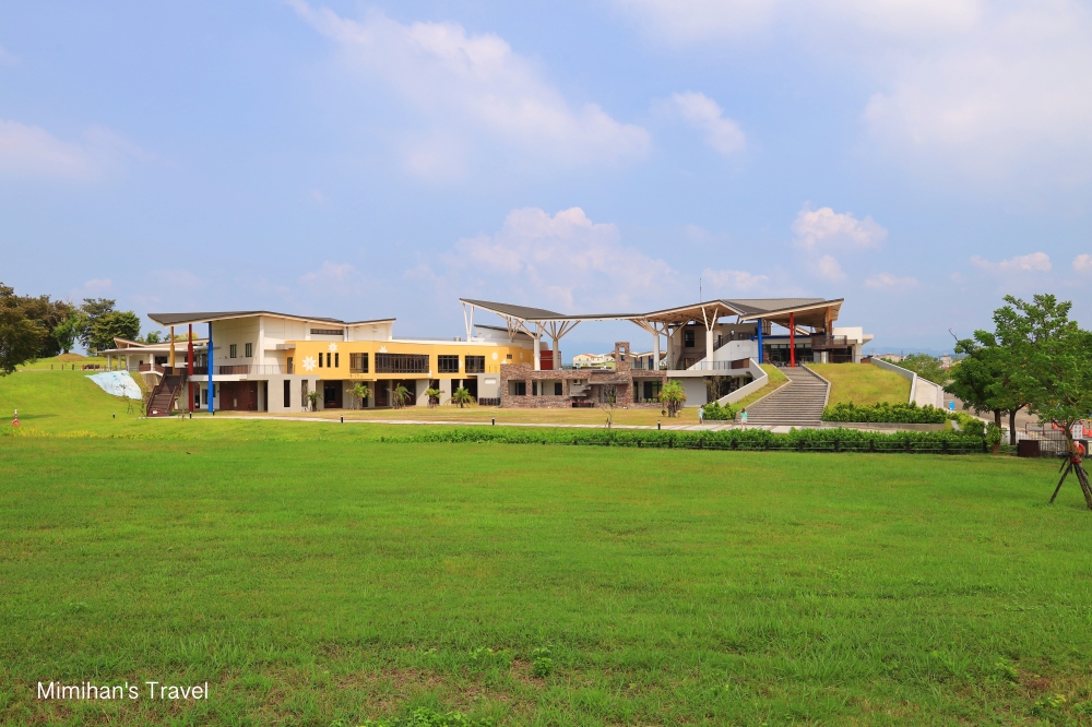 整座西拉雅遊客中心主體是兩層樓高的綠建築,以代表西拉雅族祖靈阿立祖的「水」與嘉南平原的「風」為概念設計還蠻好看,座落在整片台南官田田野間並不覺得突兀。