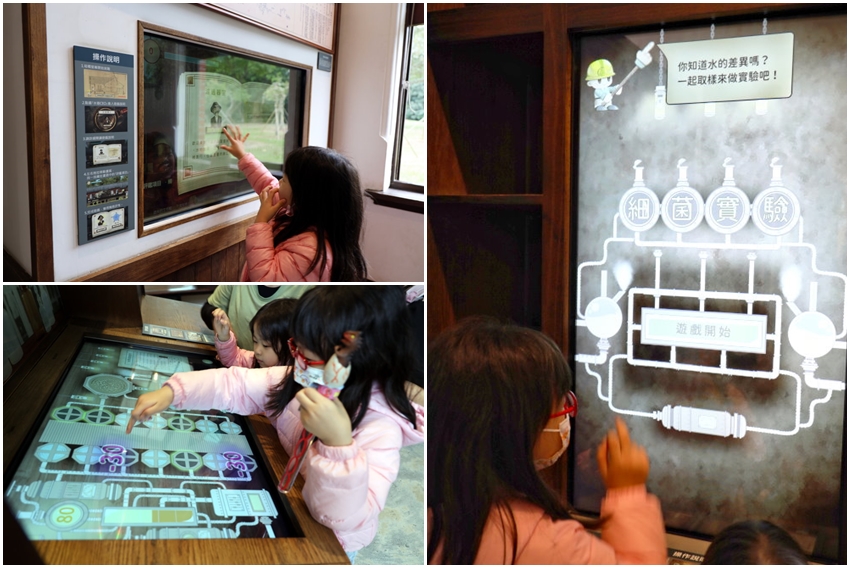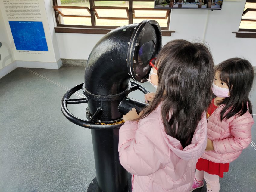 ▼日本明治維新後學習了不少國外技術,在臺日治時期因為想改善公共設備,所以畫了很多水道設計圖,在這裡都有展示出來!小朋友也可以藉由觀測鏡來欣賞地下層的快濾池管線~~