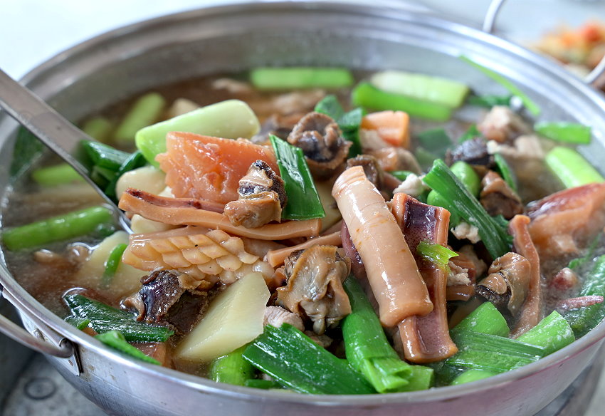 ▼螺肉魷魚蒜,舊時酒家菜在這裡也能享用得到,真的是太神奇啦~~滿滿一鍋料多實在,光看就叫人滿意!吃起來有魷魚、螺肉的Q彈口感,搭配蔬菜與蒜苗更增添甘甜香氣,喝起來香滑順口!