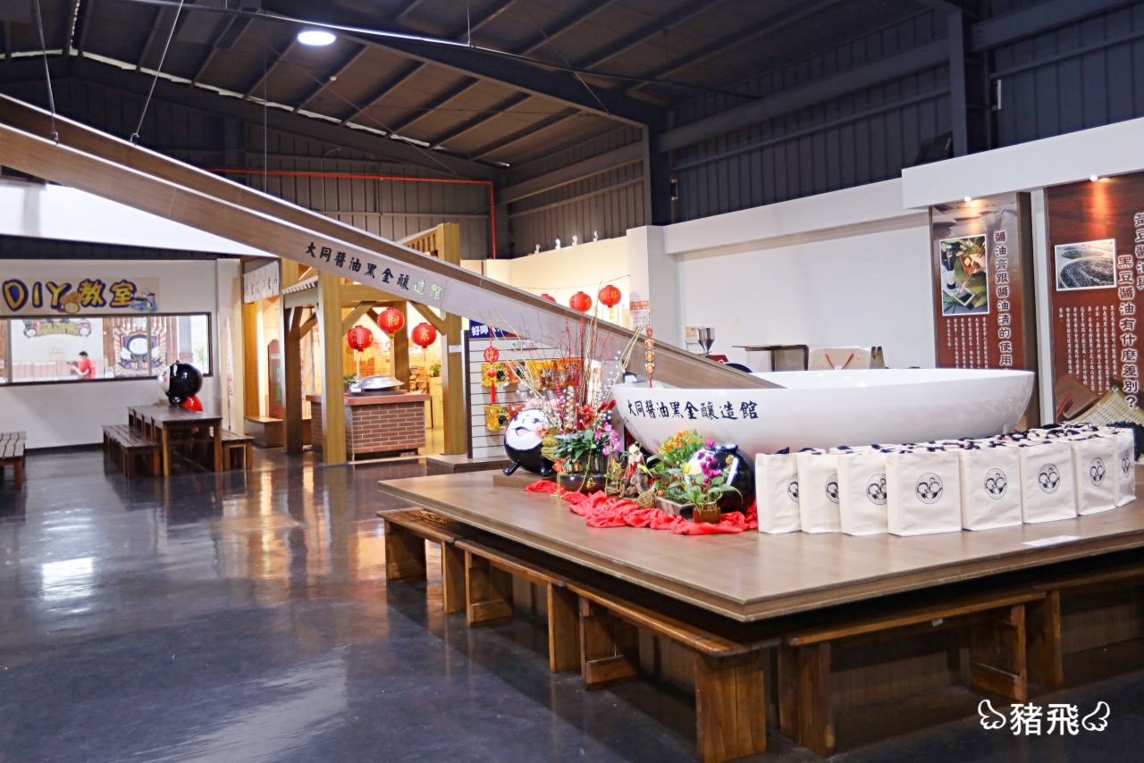 【大同醬油黑金釀造館】在民國100年成立,館內展示企業的歷史文化跟醬油製程,大同醬油其實是以賣肉圓起家,因為每天的肉圓都會剩下,但搭配的自製醬油都會被客人買走,最後反客為主成了主力商品,就這樣誤打誤撞開啟了醬油之路。堅持以純黑豆、麴菌放入甕裡釀製180天的手工醬油,不添加防腐劑,天然美味散發甘醇滋味,不管是滷肉、拌飯拌麵都格外美味。館內除了可以透過歷史長廊了解品牌歷史文化,也能預約DIY體驗,還能買到獨特風味的醬油喔!