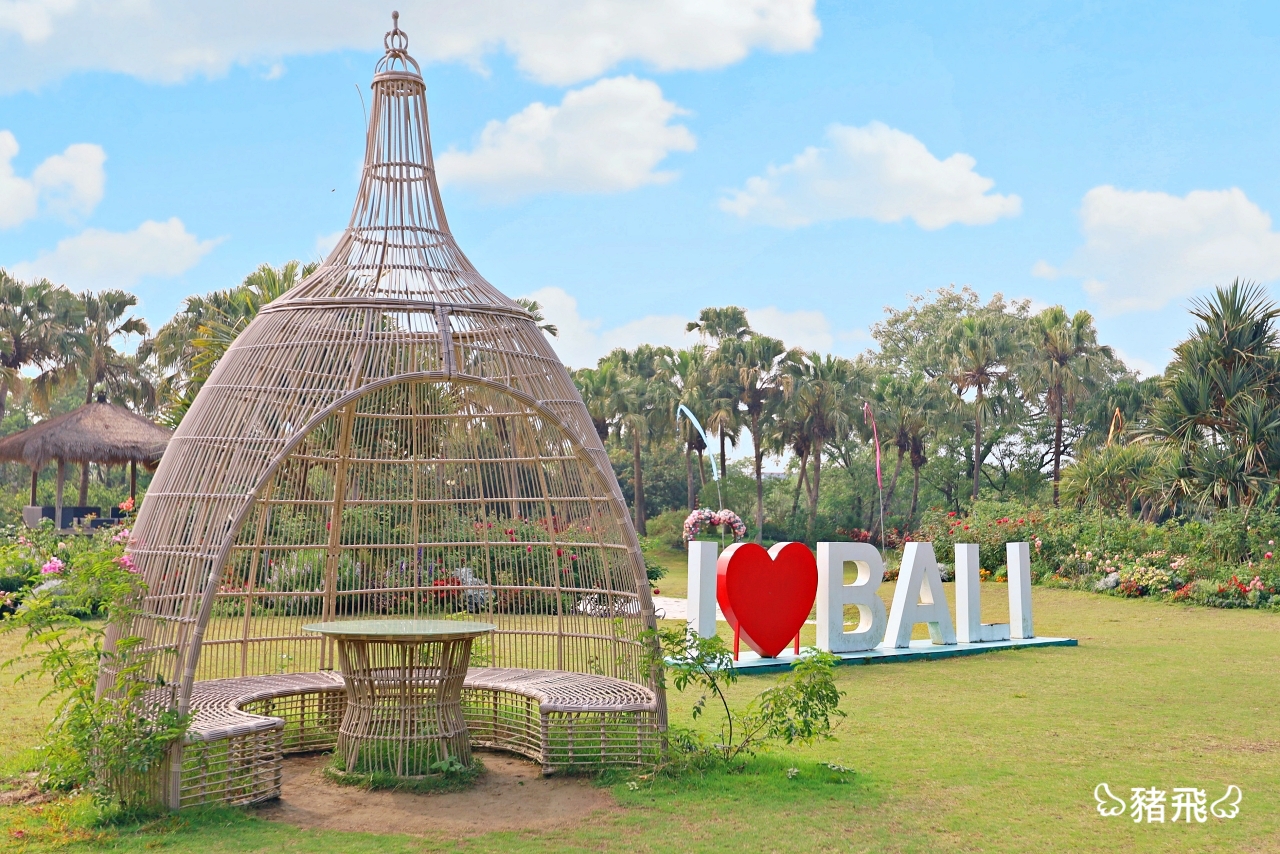 這裡是知名美容保養品大廠「雅聞倍優」觀光工廠(名字沒聽過嗎?代言人是蕭敬騰的那個保養品就知道了吧XD),結合了藝術美學、美食購物、休閒娛樂,園區裡以峇里海岸風格打造,用了數千顆玫瑰花、棕櫚樹、沙灘海岸、南洋茅草涼亭佈置。