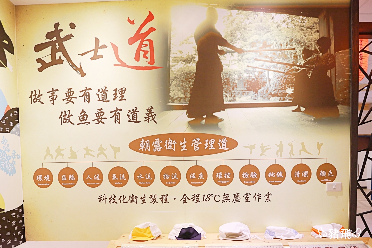 館內別具用心的設置五個主題館,還有可以參觀的加工製程區,讓遊客實地了解新鮮好吃的過程。其中最讓人印象深刻的就屬冷凍新一夜干竹莢魚,跟我們想像中把魚清理乾淨後掛在室外風乾的印象完全不同。嚴選國產鮮嫩竹莢魚透過「全國首創魚鮮衛生12管理道」超嚴格把關製程!全程在溫控18度c以下的無塵室廠房內加工,搭配獨特風味,控管濕度、溫度進行烘乾,不只是鎖住魚肉風味也讓口感更加Q彈。並具CAS驗證:CAS NO.134710朝露魚舖冷凍新一夜干竹莢魚。