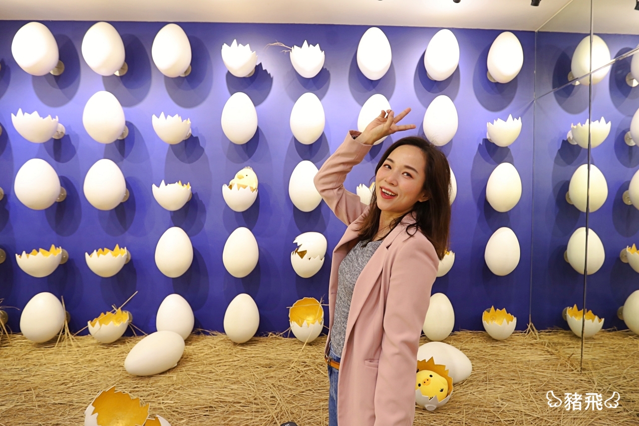 ▲快跟超可愛雞蛋牆合照!真才實料的千層蛋糕用了數萬顆雞蛋堆疊出來,而一年做出來的千層蛋糕可以堆出48座台北101呢。