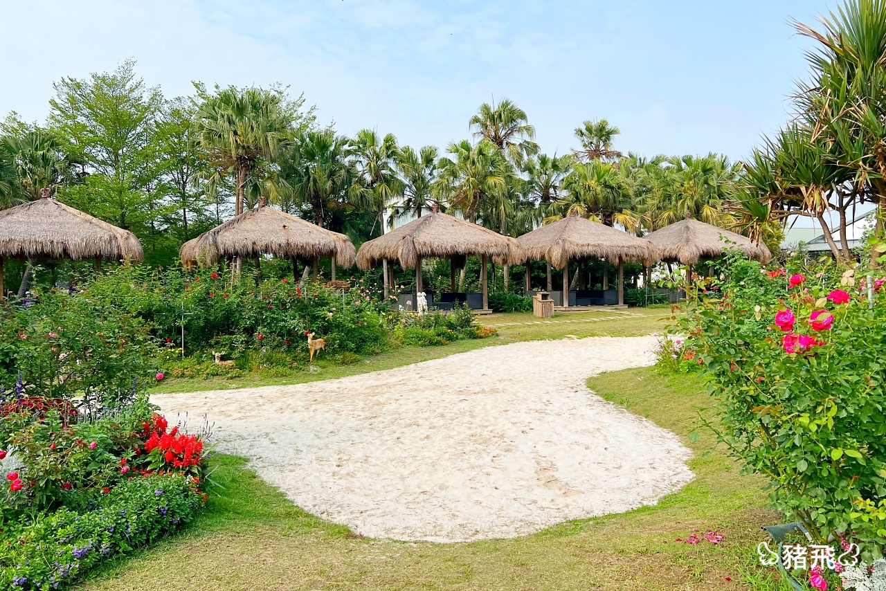 ▲園區內照顧完善綠意盎然的花園配上白色沙灘、南洋茅草屋,美的讓人忘記身在台灣。