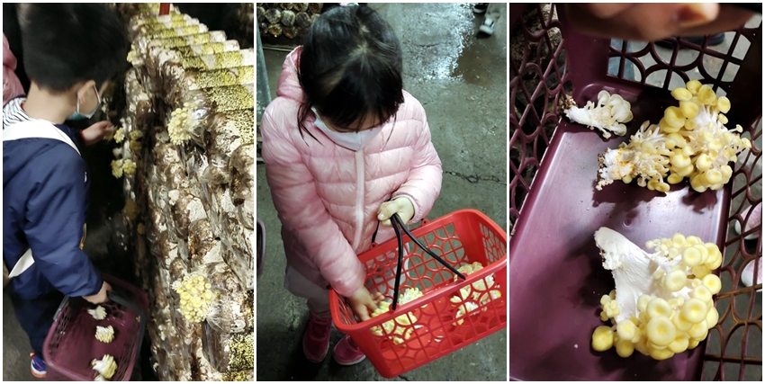 ▼一開始先來採珊瑚菇,這裡的菇類都是無毒種植,所以大家都可以放心採收、享用!