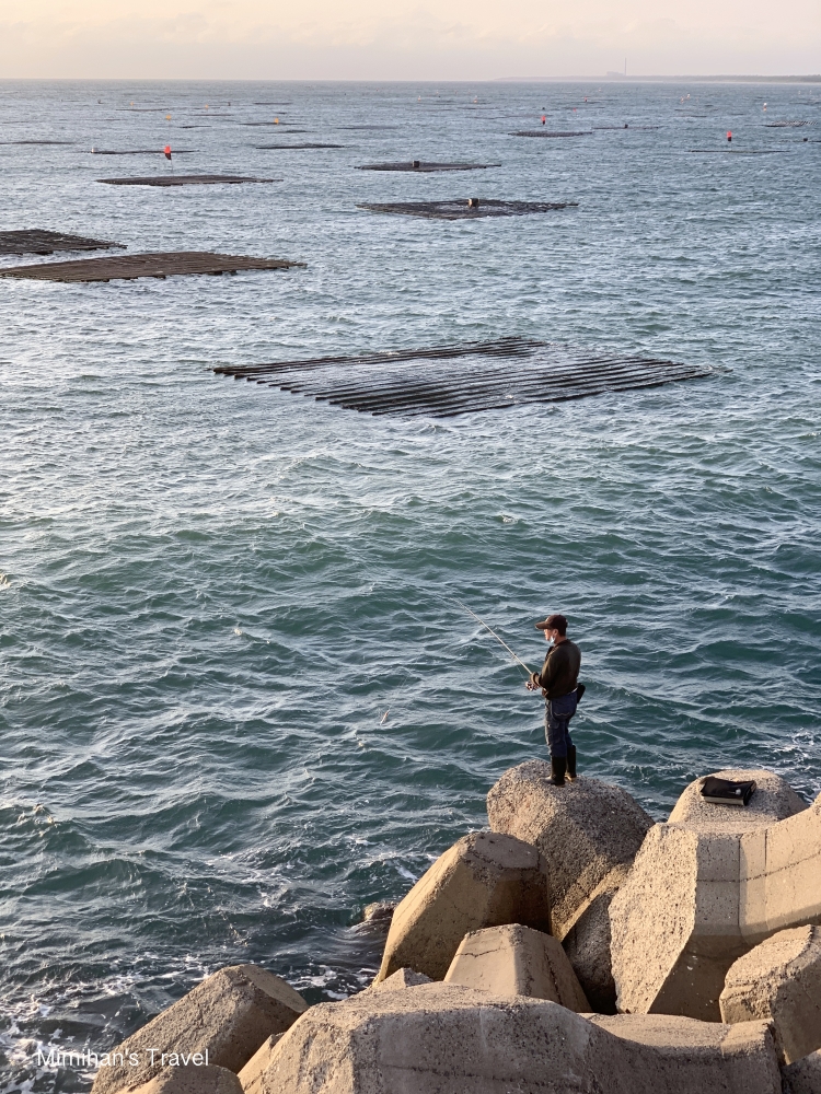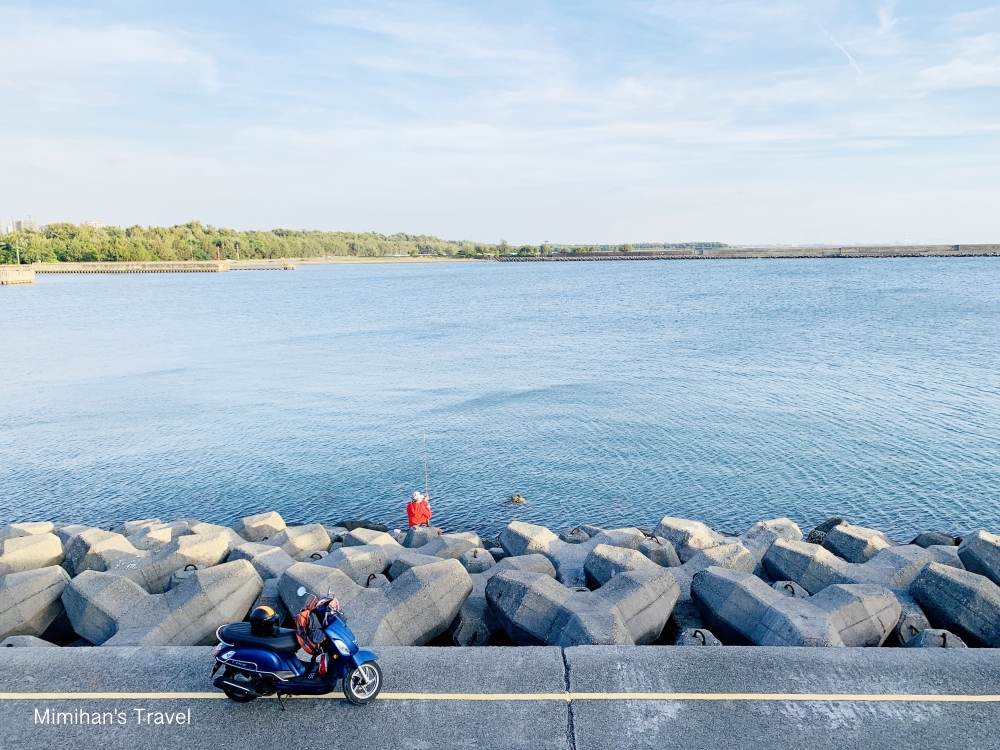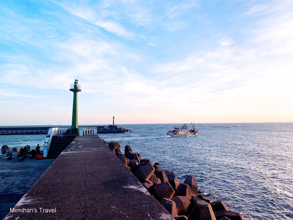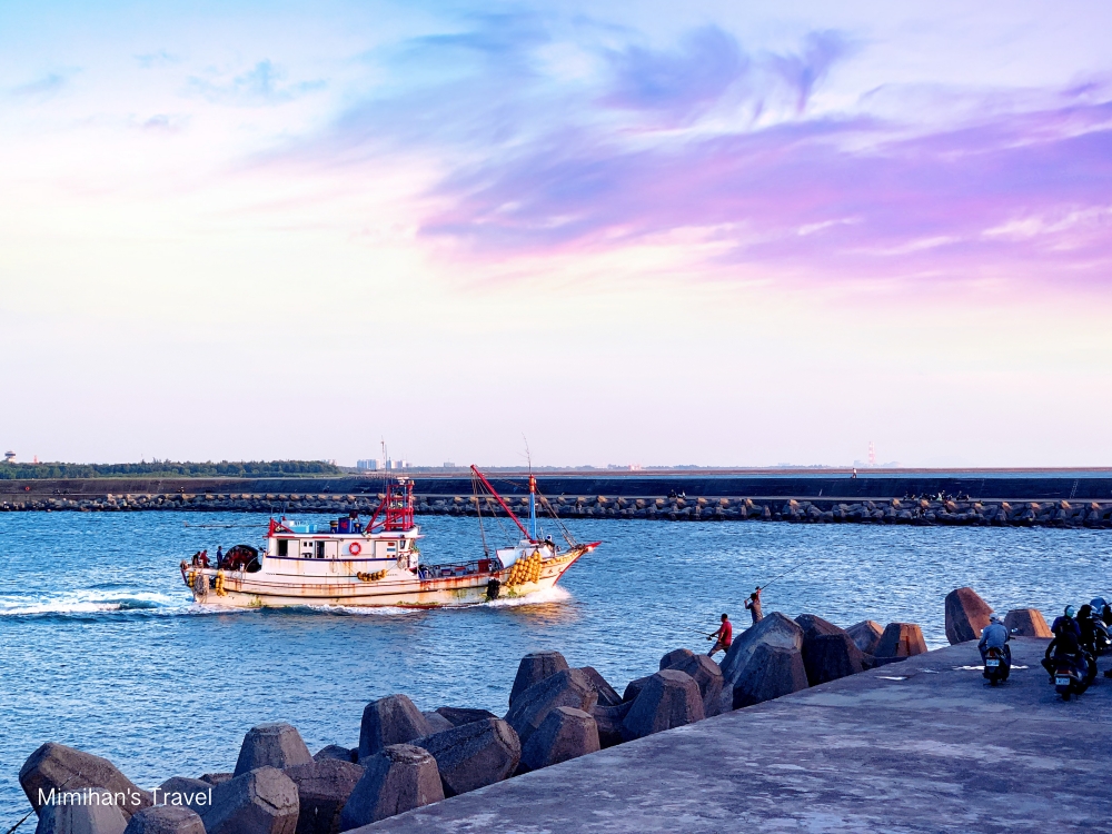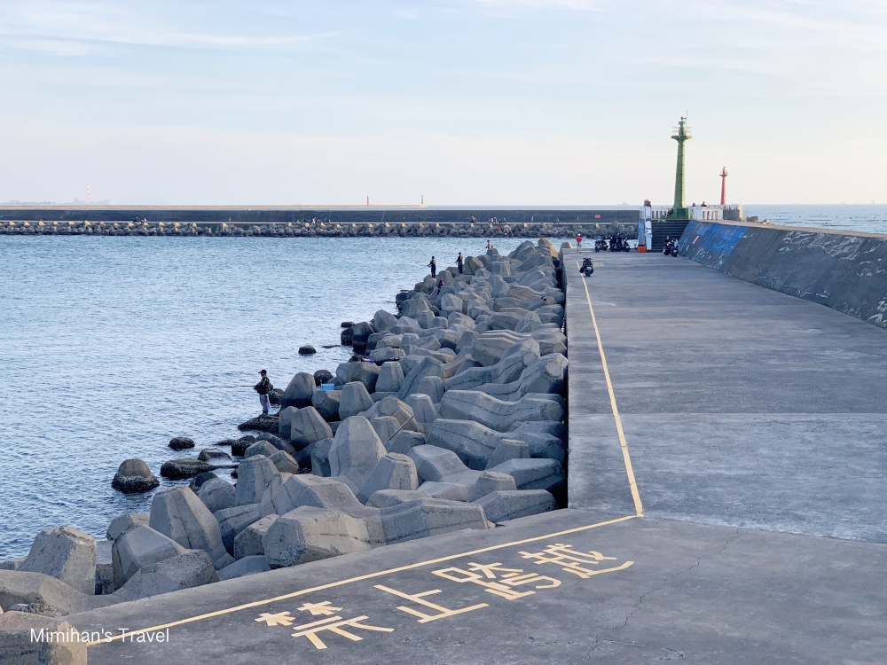 北堤上一邊是觀夕平台的沙灘海景,另一邊則是安平漁港出海口,可以一直走到燈塔旁邊看漁船出港,話說感覺這裡應該是魚群的聚集地,釣客還不少呢!