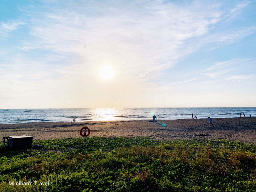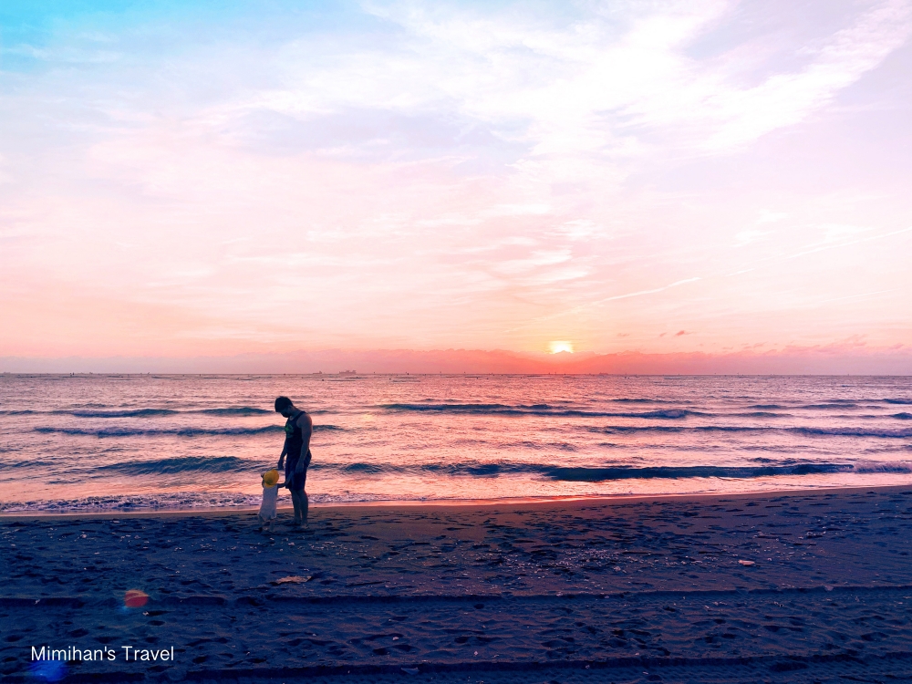 我通常不會下去踩水,因為這裡都是黑沙子弄濕很難清,不過光是靜靜著坐在海灘旁看著鹹蛋黃慢慢消失在海平線,就讓人有一種浪漫幸福的感覺,不用走遠在城市裡就能享受到。