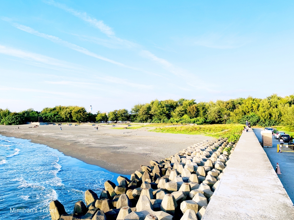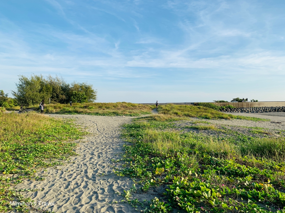 也可以循著被大家踏出來的小徑走上海堤(北堤),從不同的角度欣賞海景,只是堤防相對狹小,遇到和對面的人交會時要小心腳步別只顧著看風景。至於上圖右邊那些車輛,大多是來釣魚的人開進來的,人家熟門熟路,我們不確定往哪彎進來的話就還是停外面比較好。